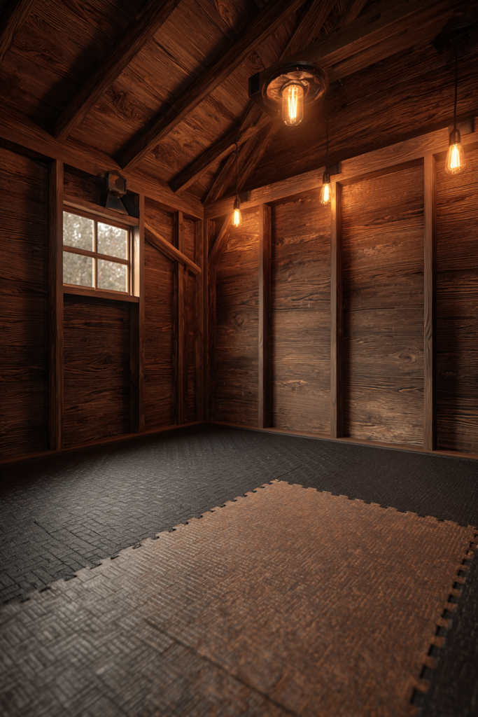 • Walls: Instead of expensive drywall, the subject used 1/4-inch plywood sheets stained in a dark walnut. This provided a “traditional artisanal” look at 40% of the cost of finished drywall.